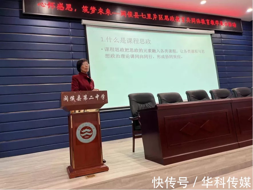 观摩课后,福建省教育学院黄丽萍教授分享了《推进学科德育,落实立德树人》的讲座,强调学科德育是落实立德树人根本任务的战略举措,学科教师应结合学科特点分类推进学科德育,在学科内容中挖掘思政元素,并通过不同的载体融入,从而帮助学生塑造正确的世界观、人生观、价值观。