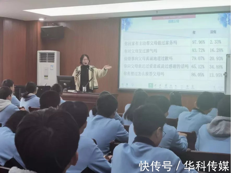 班主任李珊老师围绕感恩父母,开展了一节《感恩之心,让爱同行》的主题班会。通过对问卷调查结果进行分析,引导学生反思自己在日常生活中对父母做得不到位的地方,进而思考如何用实际行动感恩父母,现场与父母的对话更是触人心弦,在场不少师生都感动得热泪盈眶!